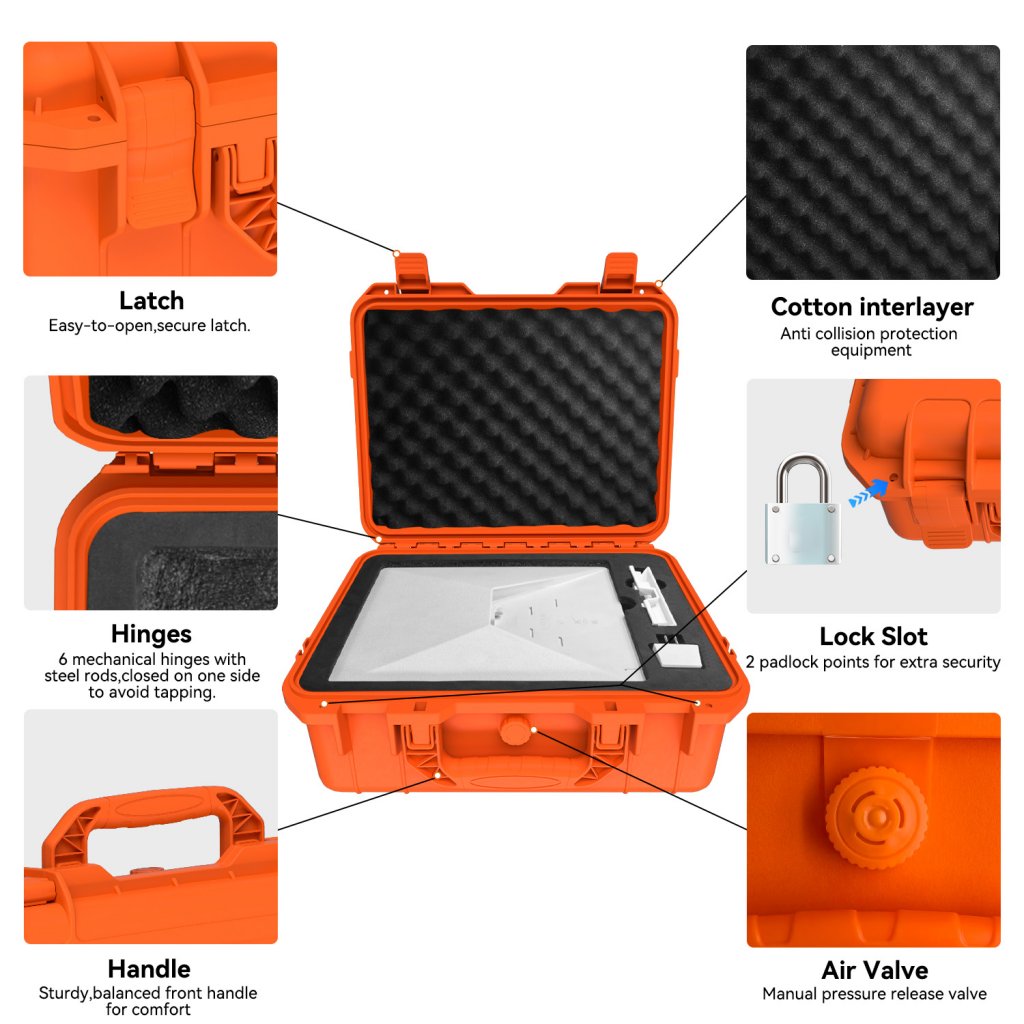 Specifical design for Starlink MINI, it can hold Starlink Mini dish and its accessories including the cable, power supply, kickstand and pipe adaptor all together easily and more!